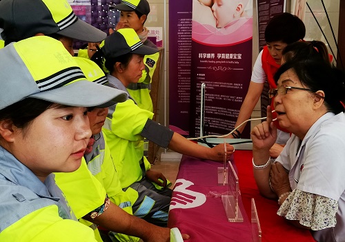 活动中为了保障环卫工人的身体健康,玛丽亚医护人员还为环卫工人准备了免费检测血压、血糖等项目,免费为她们做健康宣教。