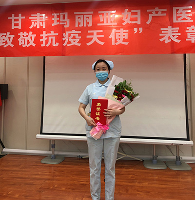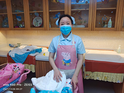 粉色和浅蓝色,是一种柔和的、象征着温暖、和谐的颜色,所以医院的产科和儿科的护士服一般都选择粉色或浅蓝色,可以减轻孩子住院时的恐惧心理。刘宝艳就是一位身着这种颜色护士服的产科护师。她在日常工作中任劳任怨的从事每一项护理工作,为新生儿洗澡、抚触、为产妇打针、输液、导尿,迎接术后病人、抢救危重患者...。她总是微笑着面对患者,用柔和温暖的语调来抚慰小婴儿的哭闹和缓解孕产妇的紧张情绪。爱在左,同情在右,走在生命的两侧,随时撒种,随时开花,将这一径长路点缀的花香四溢,让穿枝拂叶的行人,即使踏过荆棘不觉痛苦,有泪可落,不觉悲凉,也许这就是“白衣天使”带给人间的爱和温暖吧。当刘宝艳听到医院要派出志愿者支援抗疫一线时,她毫不犹豫的报了名。她说,去年武汉疫情肆虐的时候,她看到很多的医护人员不惧风险,逆行而上去支援武汉的抗疫工作,他们舍小家顾大家,义无反顾,为完成党和政府的重托不辞辛苦,不惧牺牲,她们给我作出了榜样。因此,这次我决心用实际行动来践行“白衣天使”的使命和担当。她确实用实际行动证明了自己,圆满完成了这次志愿一线抗疫的任务。