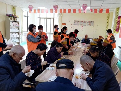 贴的话语、热情的服务、温馨的关怀,志愿者们与老人们亲切互动,告诉她们要保护好身体,注意饮食卫生,避免感冒。