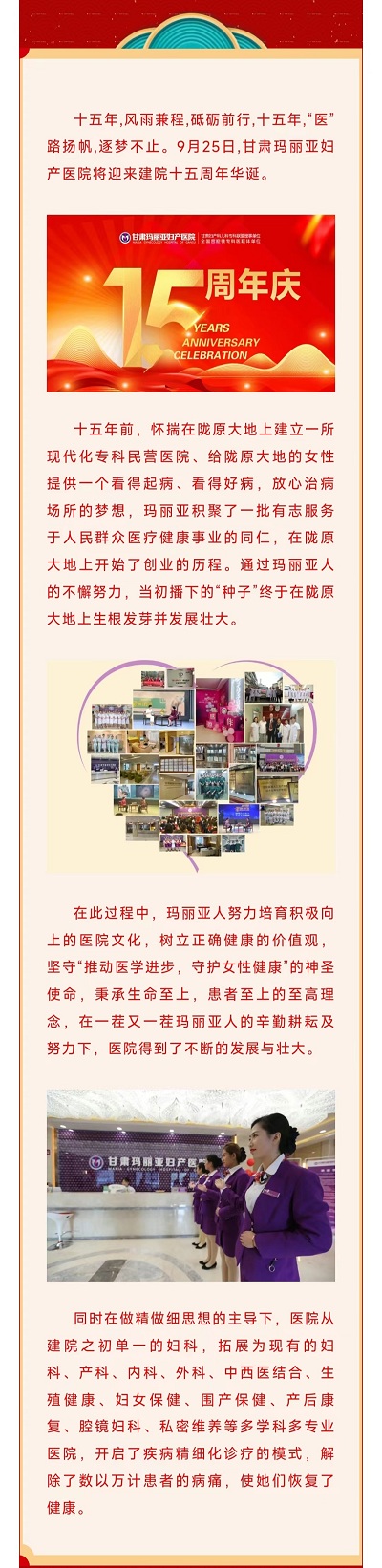 热烈祝贺甘肃玛丽亚妇产医院建院十五周年